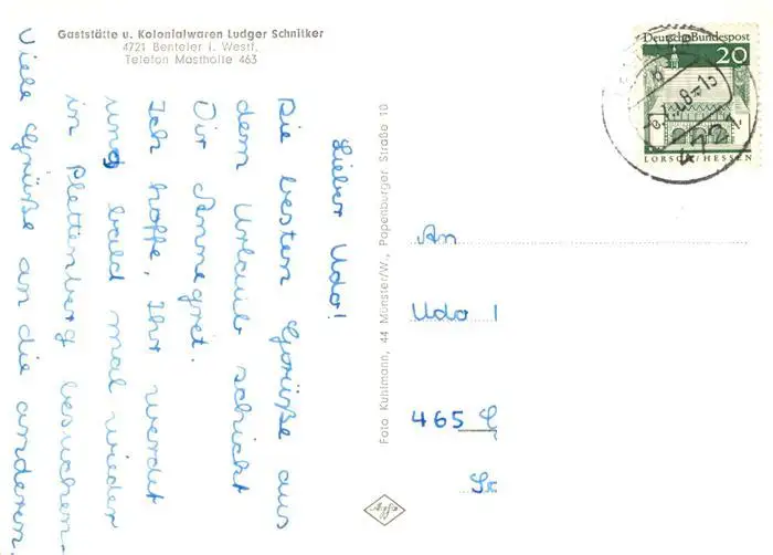 73869869 Benteler_Langenberg Kirche Gaststaette Ludger Schnitker Monument Kanal postalisch gelaufen 1968 Erhaltung siehe scans [FriedD77] [Frierer ]