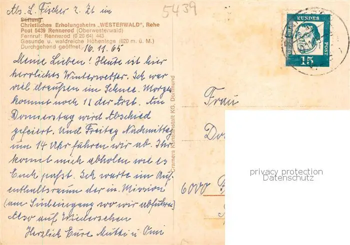 73870124 Rennerod Stiftung Christl Erholungsheim Westerwald Rennerod postalisch gelaufen 1965 Erhaltung siehe scans [WerneD78] [WernPID7 ]