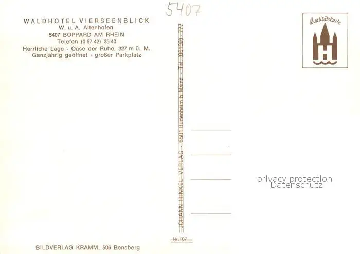 73870453 Boppard_Rhein Waldhotel Vierseenblick Panorama Rheinpartie Gaststube Boppard Rhein postalisch nicht gelaufen nach 1965 Erhaltung siehe scans [WerneD78] [WernPID7 ]