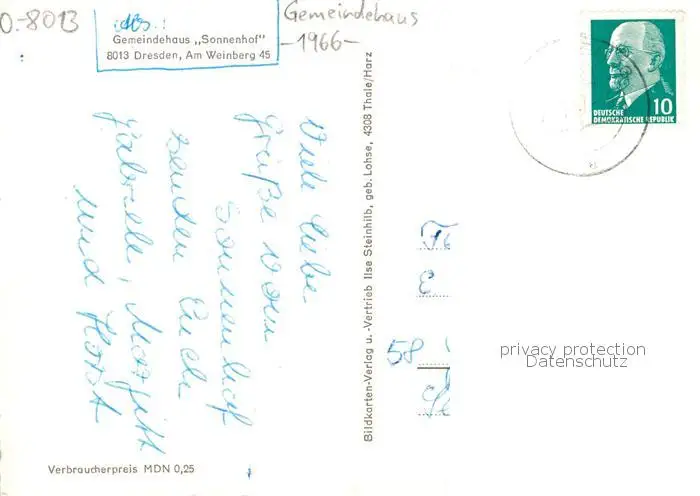 73870855 Dresden_Elbe Gemeindehaus Sonnenhof postalisch gelaufen 1966 Erhaltung siehe scans [WerneD78] [WernPID7 ]