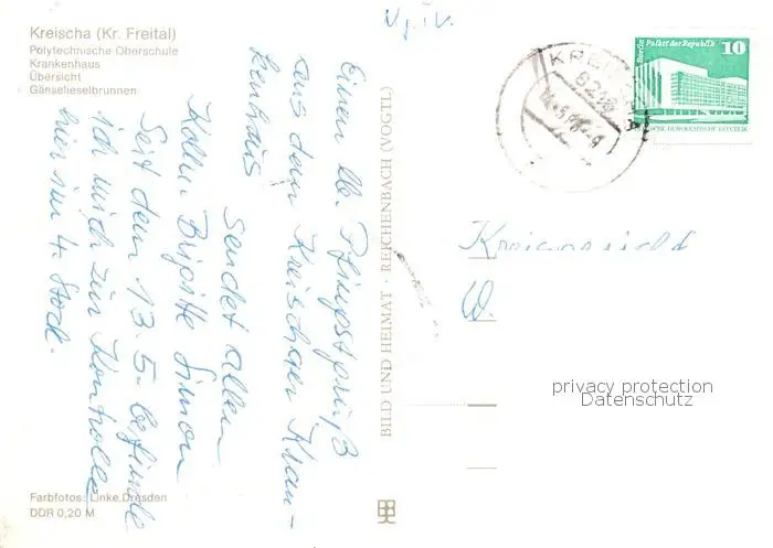 73870911 Kreischa Polytechn Oberschule Krankenhaus uebersicht Gaenselieselbrunnen Kreischa postalisch gelaufen nach 1965 Erhaltung siehe scans [WerneD78] [WernPID7 ]