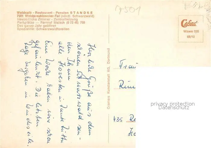 73871070 Waldprechtsweier Waldcafe Restaurant Pension Standke Waldprechtsweier postalisch gelaufen nach 1965 Erhaltung siehe scans [WerneD78] [WernPID7 ]