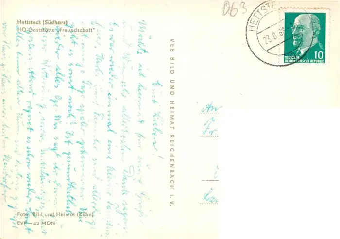 73871217 Hettstedt HO Gaststaette Freundschaft Hettstedt postalisch gelaufen 1965 Erhaltung siehe scans [FriedD77] [Frierer ]