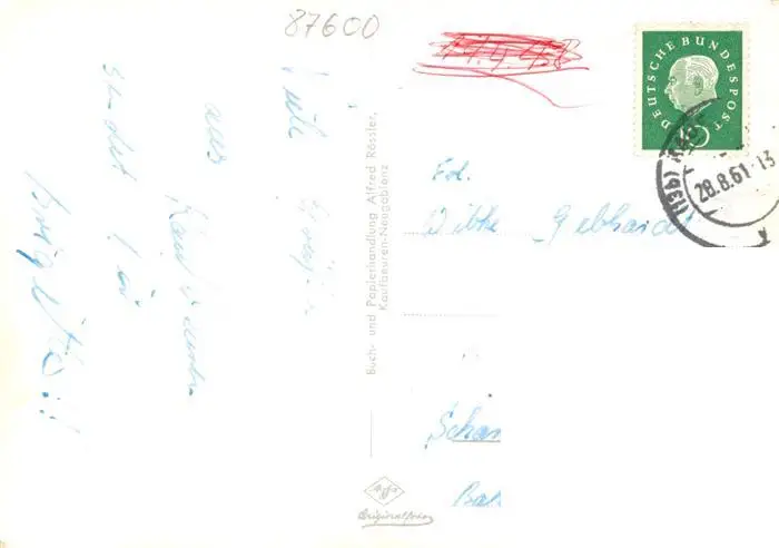 73871732 Neugablonz_Kaufbeuren Sudetenstrasse Neue Herz-Jesu-Kirche Haus der Gablonzer Industrie Staatliche Fachschule der Gablonzer Industrie postalisch gelaufen 1961 Erhaltung siehe scans [FriedD77] [Frierer ]