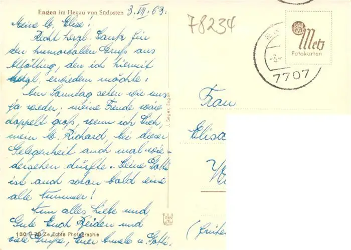 73872529 Engen_Hegau Ortsansicht mit Kirche Engen Hegau postalisch gelaufen 1963 Erhaltung siehe scans [FriedD77] [Frierer ]