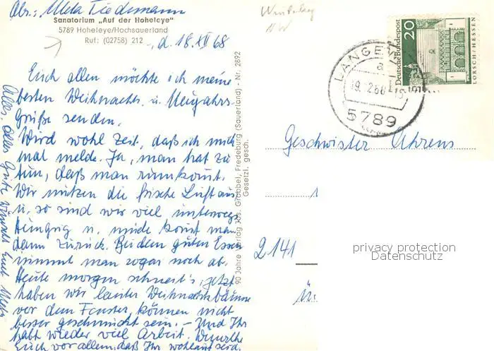 73873592 Hoheleye Sanatorium Auf der Hoheleye Speiseraum Hoheleye postalisch gelaufen 1968 Erhaltung siehe scans [WerneD78] [WernPID7 ]