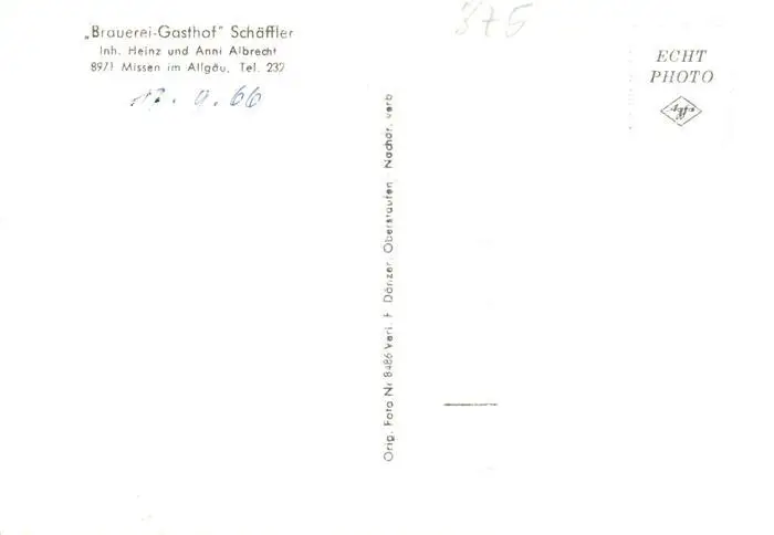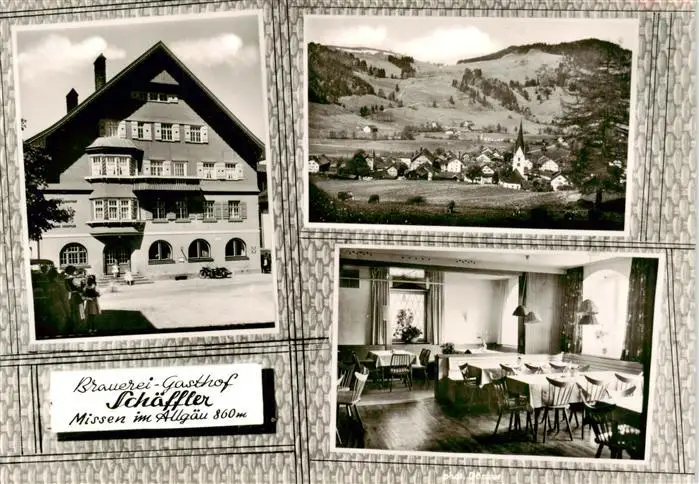 73873705 Missen_Oberallgaeu Brauerei-Gasthof Schaeffler Panorama Ortsansicht mit Kirche Missen Oberallgaeu postalisch nicht gelaufen 1966 Erhaltung siehe scans [FriedD77] [Frierer ]