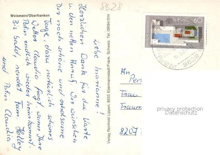 73873820 Weismain Ortspartie mit Kirche Weismain postalisch gelaufen 1989 Erhaltung siehe scans [WerneD78] [WernPID7 ]