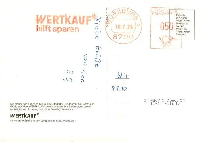 73873957 Wuerzburg_Bayern Wertkauf Center postalisch gelaufen 1979 Erhaltung siehe scans [WerneD78] [WernPID7 ]