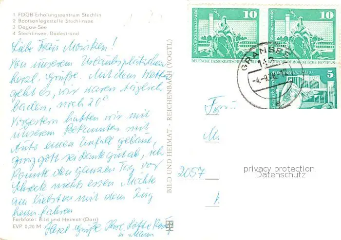 73874261 Neuglobsow_Stechlin FDGB Erholungszentrum Stechlin Bootsanlegestelle Dagow See Stechlinsee Badestrand postalisch gelaufen 1976 Erhaltung siehe scans [WerneD78] [WernPID7 ]