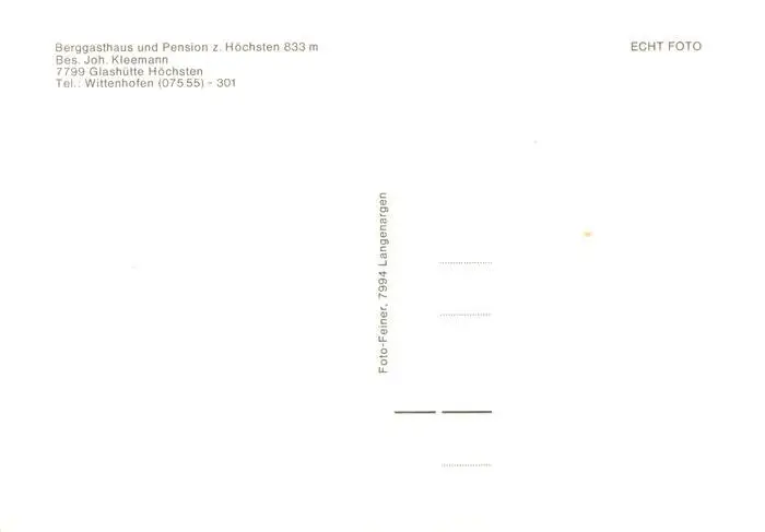 73874765 Glashuetten_llmensee Berggasthaus Pension zum Hoechsten Glashuetten_llmensee postalisch nicht gelaufen nach 1965 Erhaltung siehe scans [FriedD77] [Frierer ]