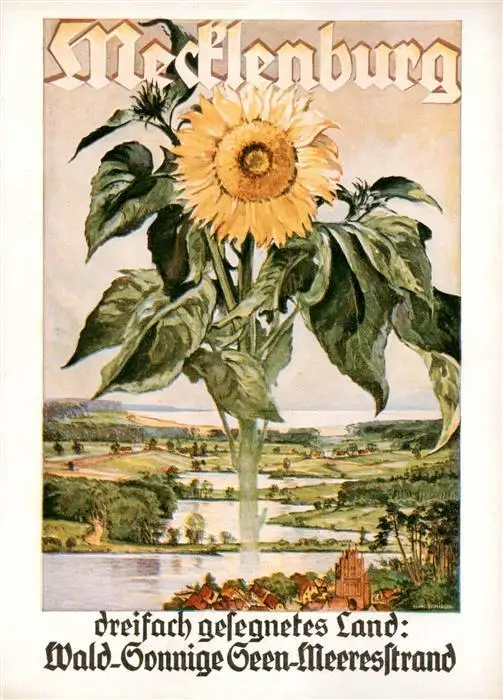 73874771 Rostock Mecklenburg Wald Sonnige Seen Meeresstrand Landschaftspanorama Sonnenblume Kuenstlerkarte postalisch nicht gelaufen 1921-1965 Erhaltung siehe scans [FriedD77] [Frierer ]