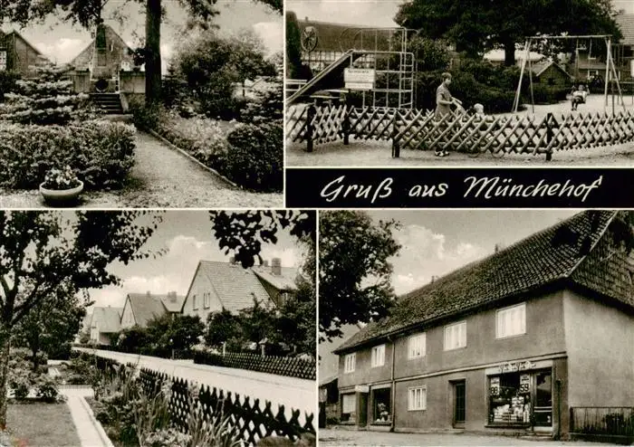 73874798 Muenchehof_Harz Ortsmotiv Wohnhaeuser Ladengeschaeft Kinderspielplatz Park Muenchehof Harz postalisch nicht gelaufen 1921-1965 Erhaltung siehe scans [FriedD77] [Frierer ]
