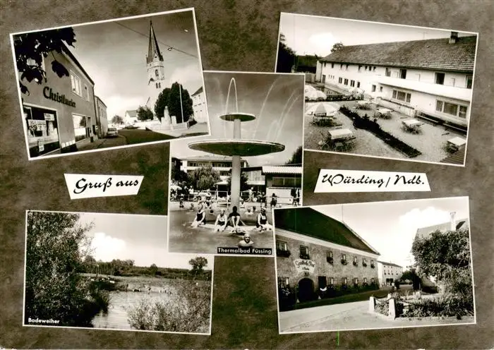 73875830 Wuerding_Bad_Fuessing Kirche Badeweiher Thermalbad Fuessing Gasthof Post Wuerding_Bad_Fuessing postalisch gelaufen nach 1965 Erhaltung siehe scans [FriedD77] [Frierer ]