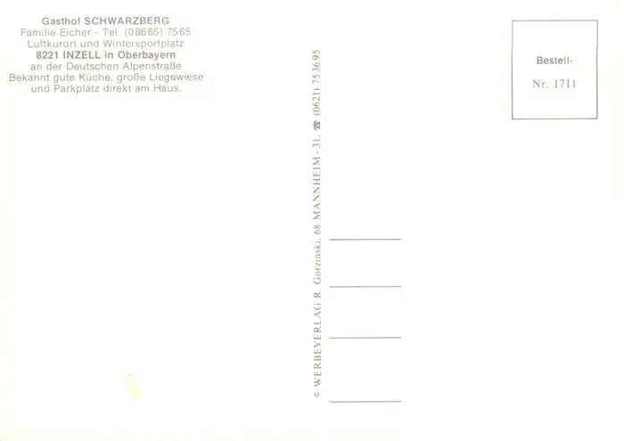 73877911 Inzell Gasthof Schwarzenberg Inzell postalisch nicht gelaufen nach 1965 Erhaltung siehe scans [WerneD78] [WernPID7 ]