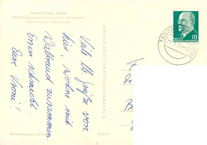 73879606 Tabarz_Bad_Tabarz FDGB Erholungsheim Theo Neubauer Vorhalle zum Speisesaal postalisch gelaufen 1964 Erhaltung siehe scans [FriedD77] [Frierer ]