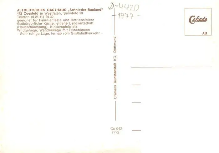 73894139 Coesfeld Altes Gasthaus Schnieder Bauland Gastraeume Coesfeld postalisch nicht gelaufen nach 1965 Erhaltung siehe scans [WerneD78] [WernPID7 ]