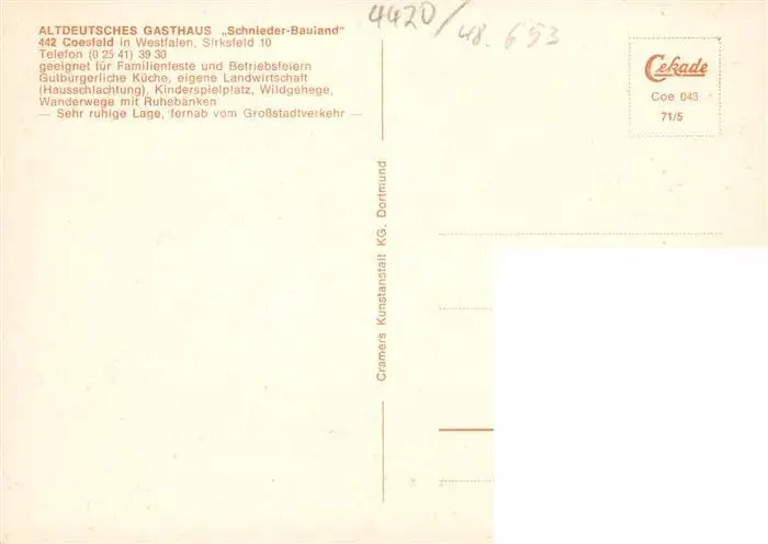 73894141 Coesfeld Altdeutsches Gasthaus Schnieder Bauland Gastraeume Tierpark Coesfeld postalisch nicht gelaufen nach 1965 Erhaltung siehe scans [WerneD78] [WernPID7 ]