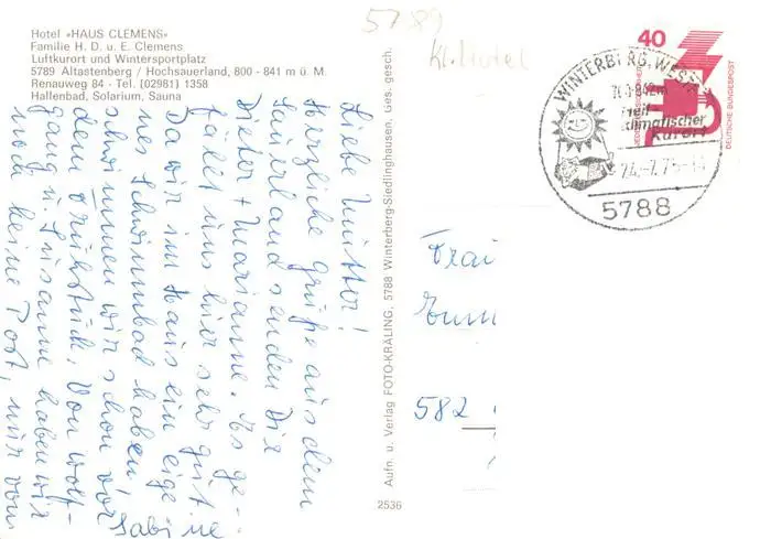 73894418 Altastenberg Hotel Haus Clemens Altastenberg postalisch gelaufen 1976 Erhaltung siehe scans [WerneD78] [WernPID7 ]