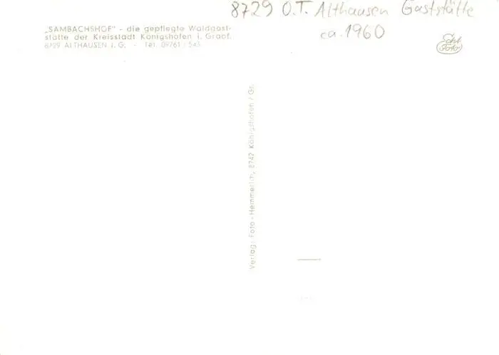 73894422 Althausen_Grabfeld Sambachshof Waldgaststaette Althausen Grabfeld postalisch nicht gelaufen nach 1965 Erhaltung siehe scans [WerneD78] [WernPID7 ]