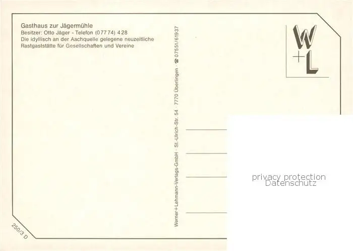 Aach__Hegau Aachquelle Gasthaus zur Jaegermuehle Gastraum postalisch nicht gelaufen nach 1965 Erhaltung siehe scans [FriedD77] Frierer