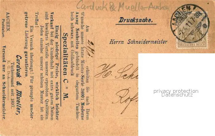 Aachen Dom Carduck und Mueller- Aachen Aachen postalisch gelaufen 1911 Erhaltung siehe scans [LiesaD40] LiesID40