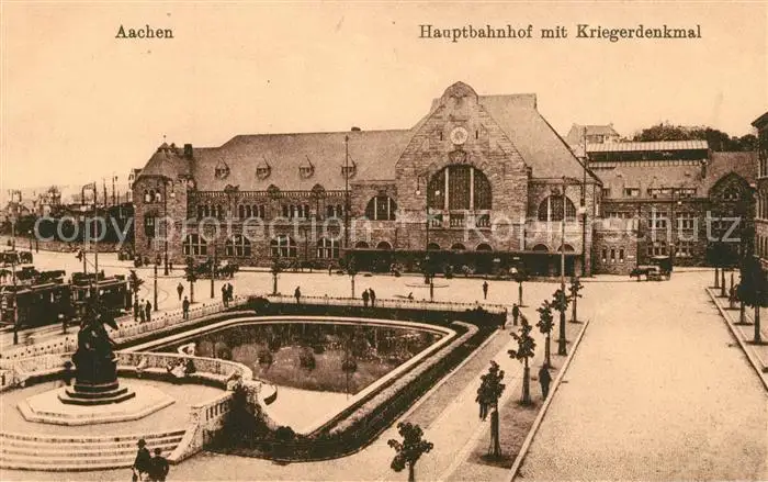 AK / Ansichtskarte Aachen Hauptbahnhof mit Kriegerdenkmal Aachen