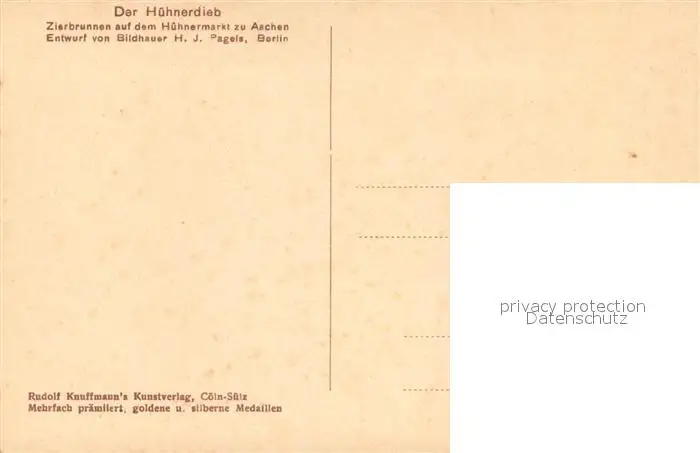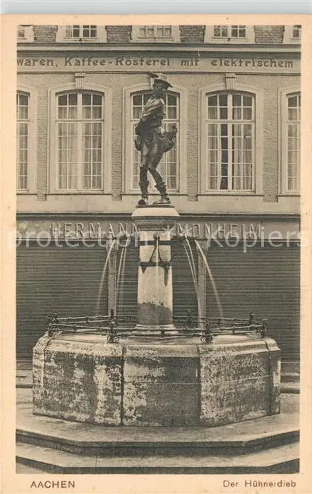 Aachen Zierbrunnen Huehnerdieb Huehnermarkt Aachen postalisch nicht gelaufen 1921-1965 Erhaltung siehe scans [FriedD77] Frierer