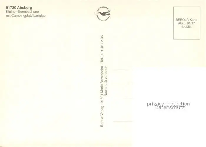 Absberg Kleiner Brombachsee mit Campingplatz Langlau Fliegeraufnahme Absberg postalisch nicht gelaufen nach 1965 Erhaltung siehe scans [WerneD78] WernPID7