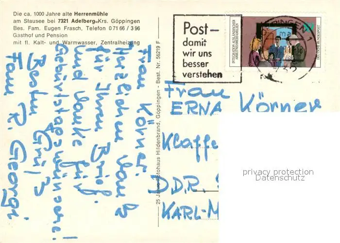 Adelberg Herrenmuehle am Stausee Gasthof Adelberg postalisch gelaufen nach 1965 Erhaltung siehe scans [WerneD78] WernPID7