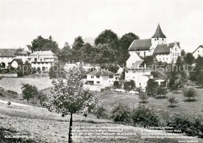 AK / Ansichtskarte Adelmannsfelden Ortsansicht mit Kirche Gedicht Anne Dieterich Adelmannsfelden