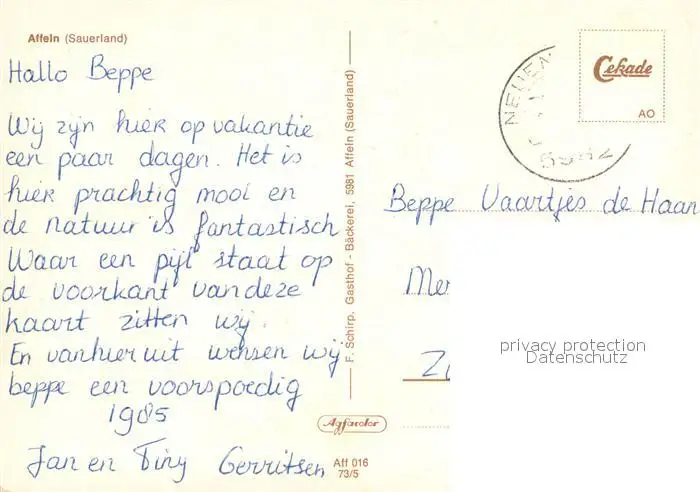 Affeln Fliegeraufnahme Affeln postalisch gelaufen nach 1965 Erhaltung siehe scans [LiesaD40] LiesID40