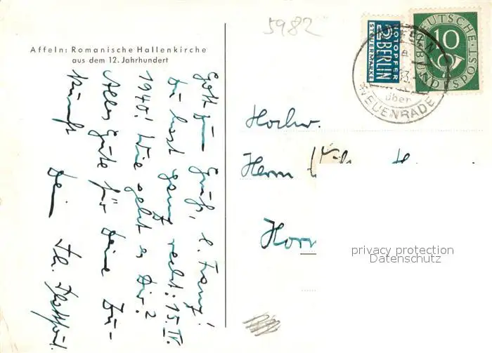Affeln Romanische Hallenkirche Inneres Affeln postalisch gelaufen 1953 Erhaltung siehe scans [WerneD78] WernPID7