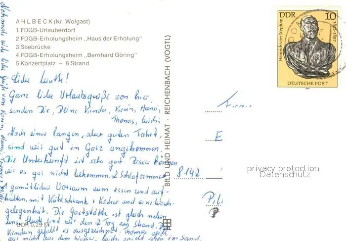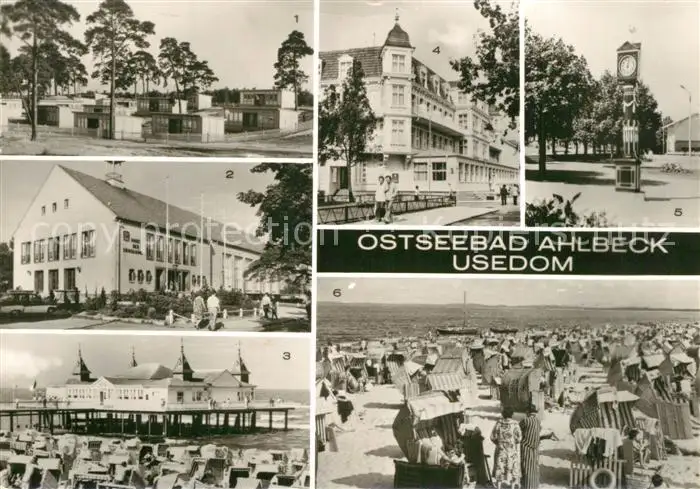 Ahlbeck_Ostseebad FDGB Urlauberdorf und Erholungsheim Bernhard Goering Seebruecke Konzerplatz Strand Ahlbeck_Ostseebad postalisch gelaufen nach 1965 Erhaltung siehe scans [WerneD78] WernPID7