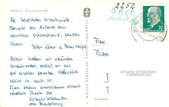 Ahlbeck_Ostseebad Kurpromenade Ahlbeck_Ostseebad postalisch gelaufen 1959 Erhaltung siehe scans [FriedD77] Frierer