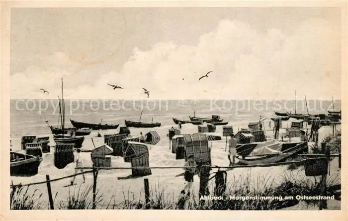 Ahlbeck_Ostseebad Morgen am Ostseestrand Ahlbeck_Ostseebad postalisch gelaufen 1921-1965 Erhaltung siehe scans [WerneD78] WernPID7