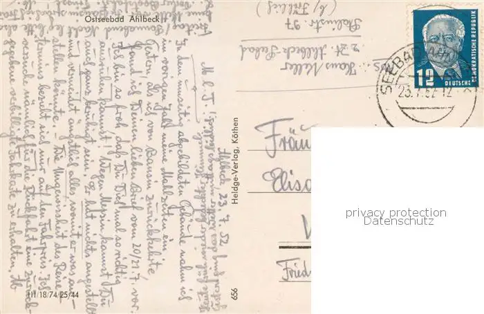 Ahlbeck_Ostseebad Villen am Strand Ahlbeck_Ostseebad postalisch gelaufen 1952 Erhaltung siehe scans [FriedD77] Frierer