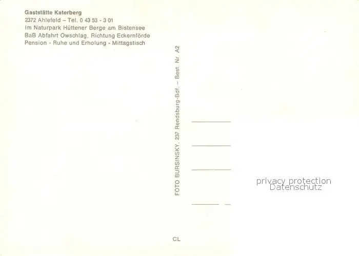 Ahlefeld-Bistensee Gaststaette Katerberg Gastraum Zimmer Ahlefeld-Bistensee postalisch nicht gelaufen nach 1965 Erhaltung siehe scans [WerneD78] WernPID7
