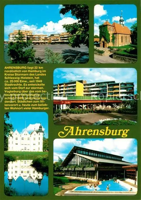 AK / Ansichtskarte Ahrensburg Stadtplatz Kirche Schloss Schwimmbad Ahrensburg