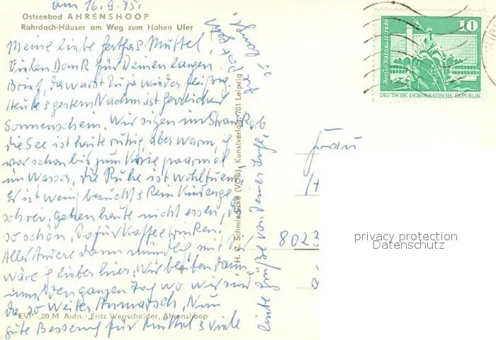 Ahrenshoop_Ostseebad Rohrdachhaeuser am Weg zum Hohen Ufer Ahrenshoop_Ostseebad postalisch gelaufen 1975 Erhaltung siehe scans [FriedD77] Frierer