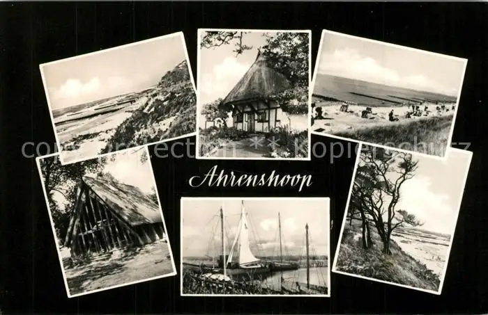Ahrenshoop_Ostseebad Strand Kueste Reetdachhaus Kirche Hafen Segelboot Ahrenshoop_Ostseebad postalisch gelaufen 1962 Erhaltung siehe scans [FriedD77] Frierer