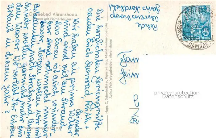 Ahrenshoop_Ostseebad Strand mit Fischerhaeusern Ahrenshoop_Ostseebad postalisch gelaufen 1921-1965 Erhaltung siehe scans [WerneD78] WernPID7