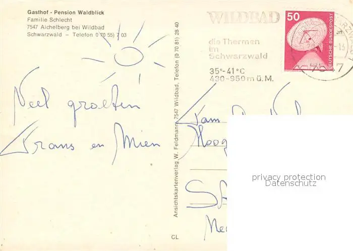 Aichelberg_Calw Gasthof Pension Waldblick Restaurant Garten Aichelberg Calw postalisch gelaufen nach 1965 Erhaltung siehe scans [FriedD77] Frierer