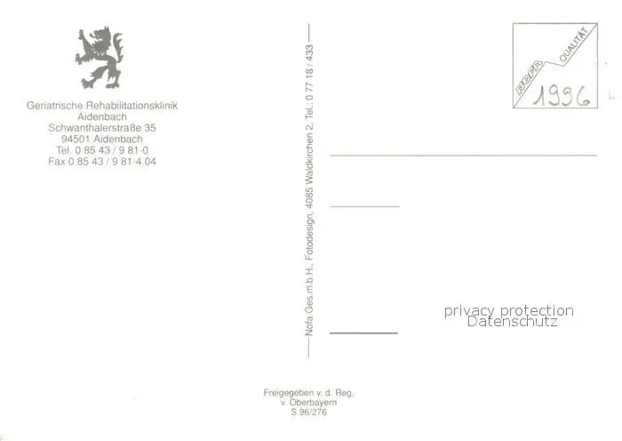 Aidenbach Geriatrische Rehabilitationsklinik Fliegeraufnahme Aidenbach postalisch nicht gelaufen 1996 Erhaltung siehe scans [FriedD77] Frierer