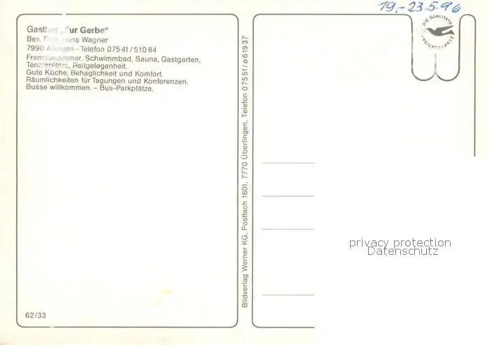 Ailingen Gasthof Zur Gerbe Bar Gerberkeller Gaststube Ailingen postalisch gelaufen 1996 Erhaltung siehe scans [WerneD78] WernPID7