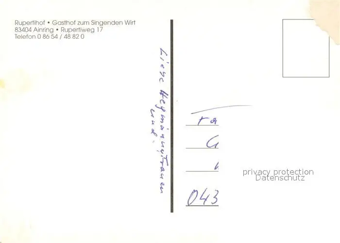 Ainring Rupertihof Gasthof Zum singenden Wirt Ainring postalisch nicht gelaufen nach 1965 Erhaltung siehe scans [FriedD77] Frierer
