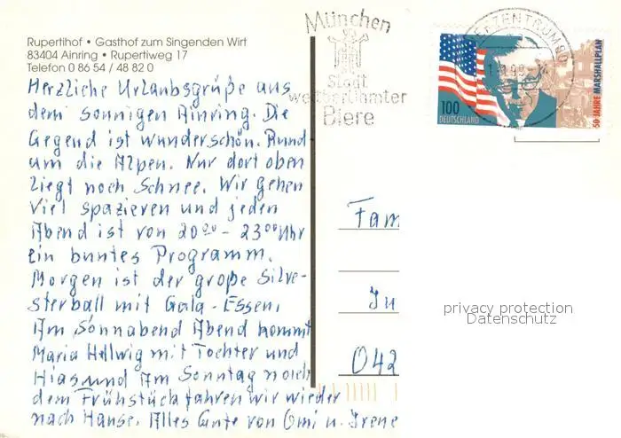 Ainring Rupertihof Gasthof zum Singenden Wirt Ainring postalisch gelaufen 1999 Erhaltung siehe scans [WerneD78] WernPID7