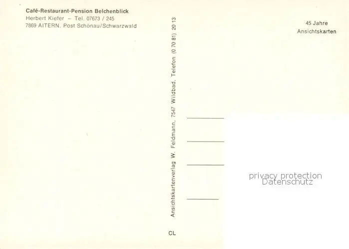 Aitern Cafe Restaurant Pension Belchenblick Panorama Aitern postalisch nicht gelaufen nach 1965 Erhaltung siehe scans [WerneD78] WernPID7