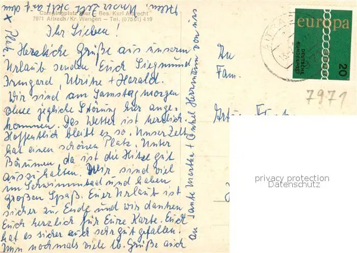 Aitrach Campingplatz Iller Restaurant Schwimmbad Aitrach postalisch gelaufen nach 1965 Erhaltung siehe scans [WerneD78] WernPID7