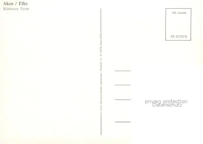 Aken_Elbe Koethener Turm Aken_Elbe postalisch nicht gelaufen nach 1965 Erhaltung siehe scans [FriedD77] Frierer